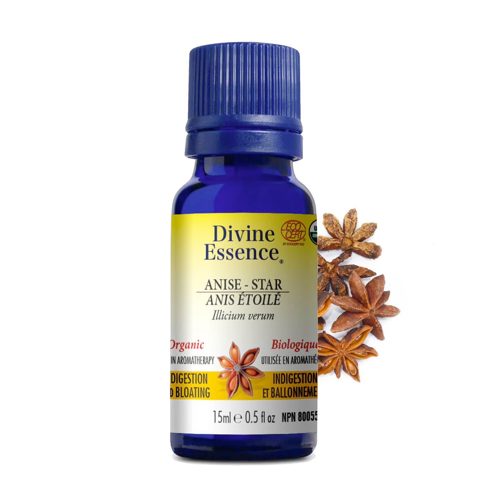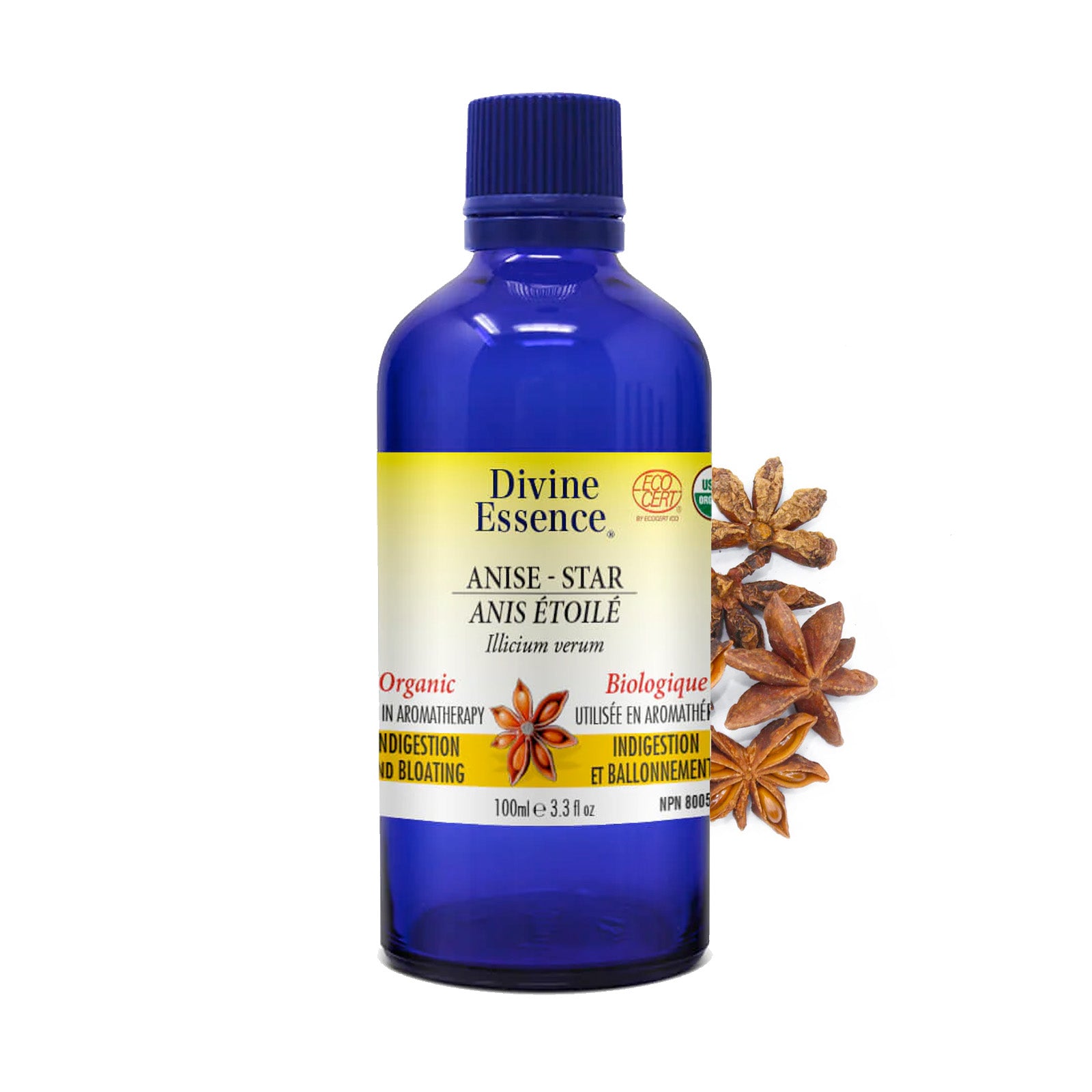 Anise Star essential oil is used in aromatherapy as an antispasmodic to relieve colic, indigestion, bloating and abdominal cramps.