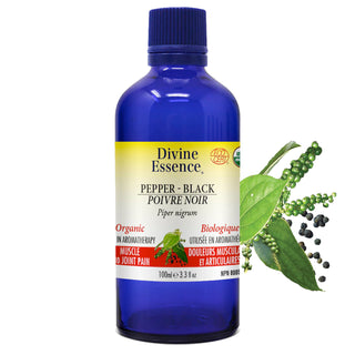 Black Pepper essential oil is used in aromatherapy to relieve symptoms of joint and muscle pain associated with sprains, strains, arthritis and rheumatoid arthritis as well as a carminative and antispasmodic to help relieve digestive disorders or constipation.