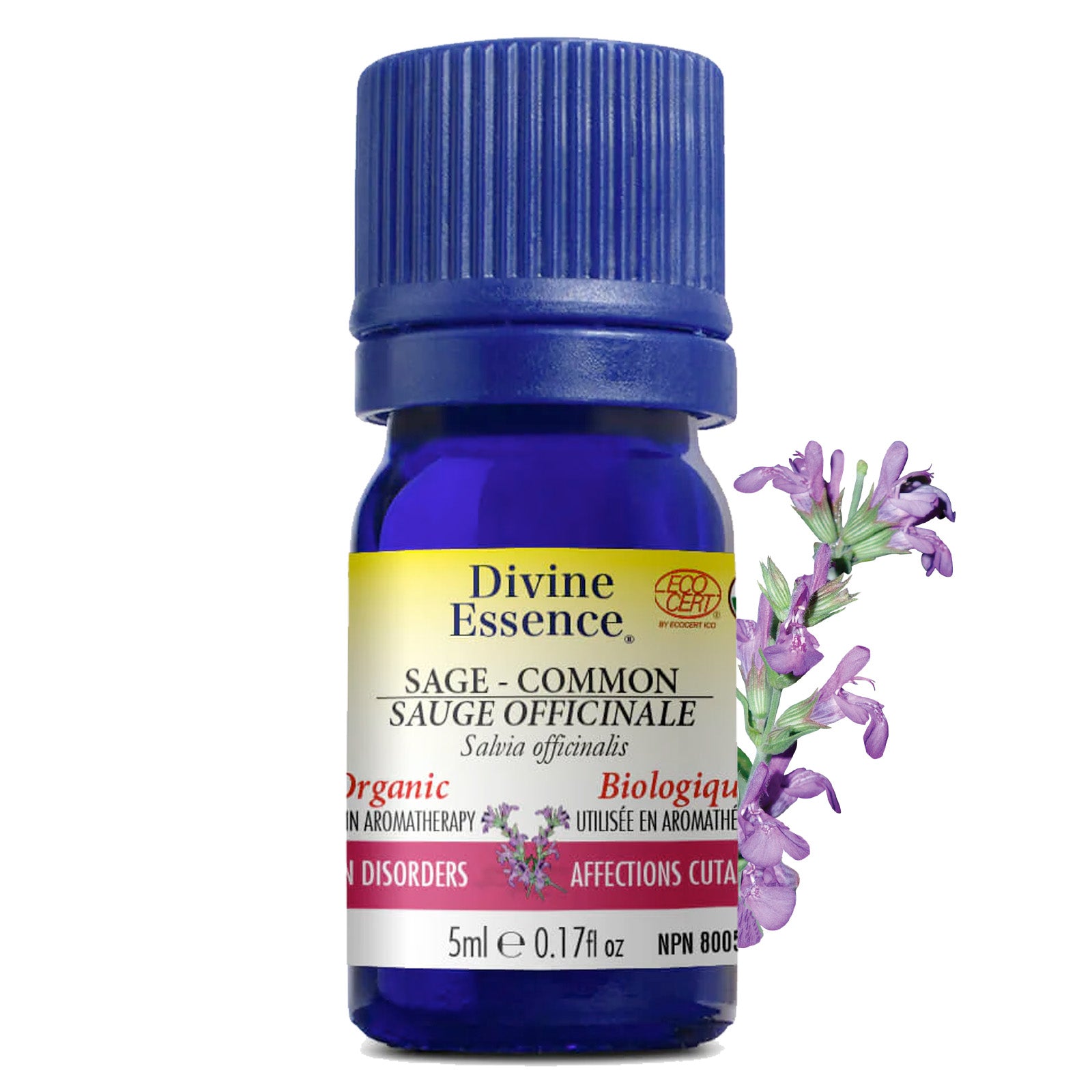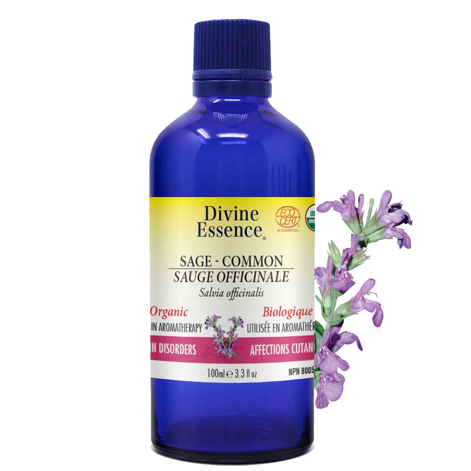 Sage Common essential oil is used in aromatherapy to help relieve minor skin irritations and insect bites and to relieve cold and cough symptoms.