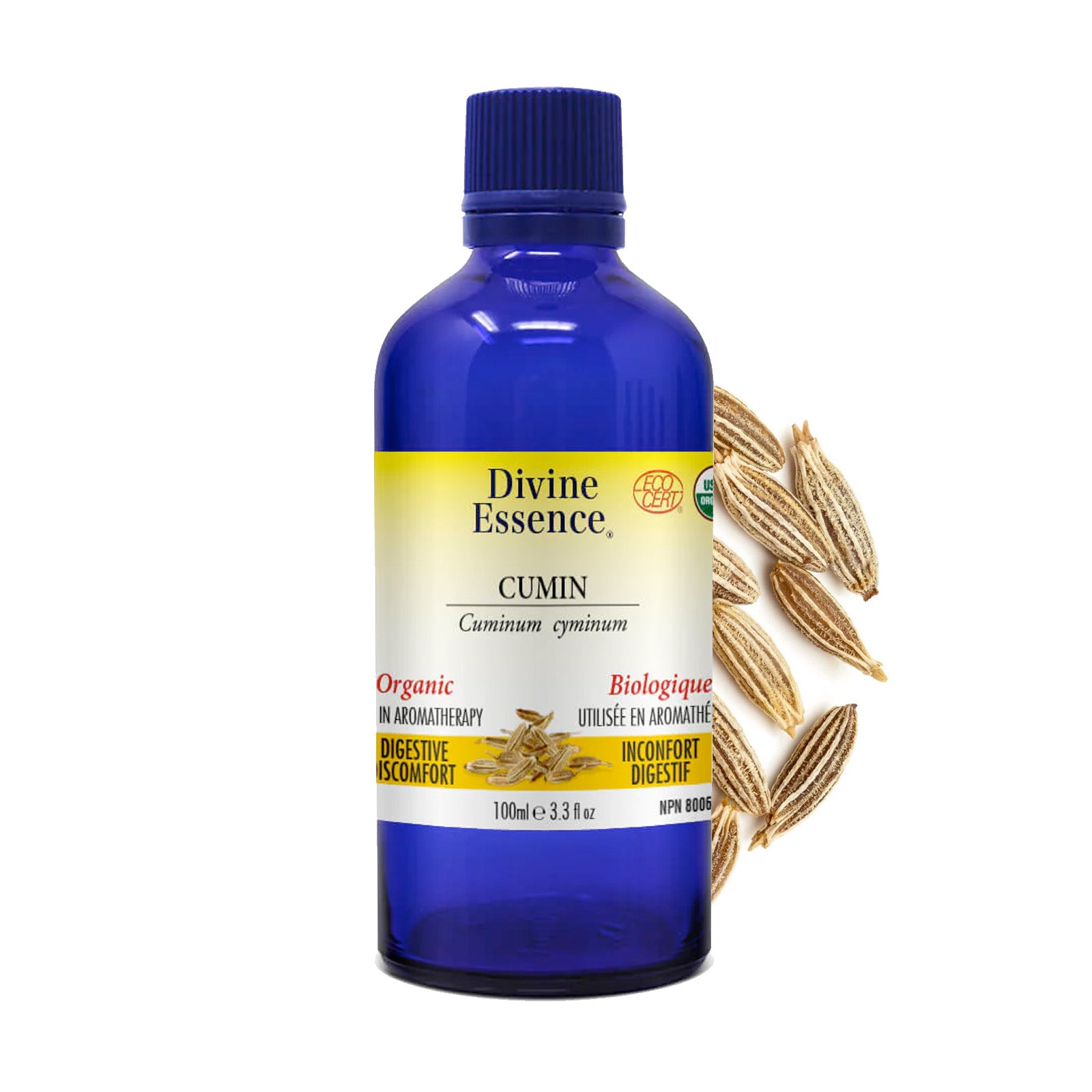 L'huile essentielle de Cumin est utilisée en aromathérapie comme carminatif et antispasmodique pour le soulagement symptomatique de l'inconfort digestif ainsi qu'un calmant nerveux.